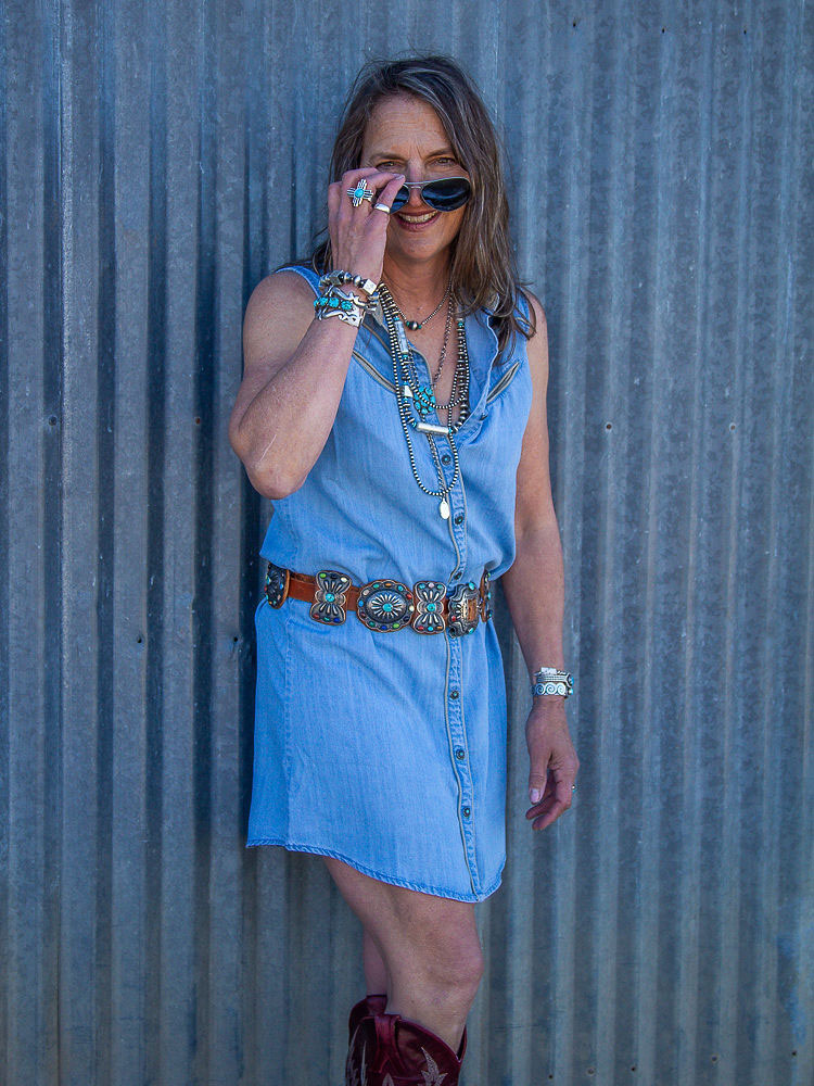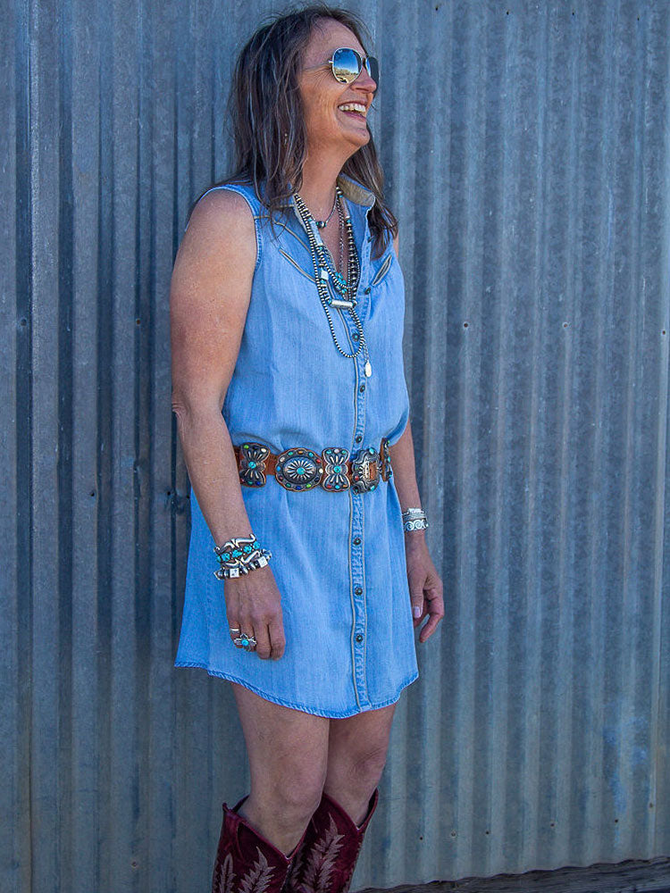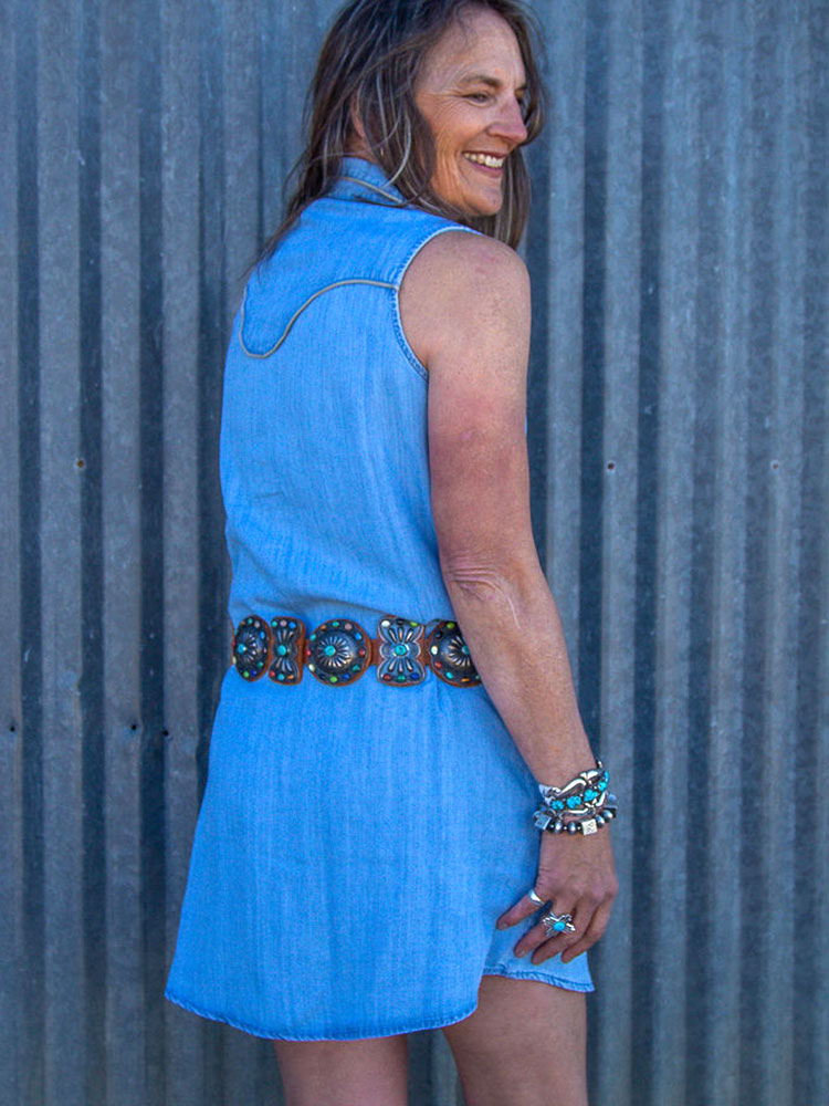 Adalyn Dress by Tasha Polizzi - Get ready to turn heads in the Tasha Polizzi Adalyn Dress! This chic chambray mini-dress features a classic collar and trendy double breast pockets with silver buttons adorned with pops of turquoise. Perfect for a night out or a casual day look. Dress to impress with Adalyn! 55% Cotton 45% Tencel. Machine wash cold. (319401)