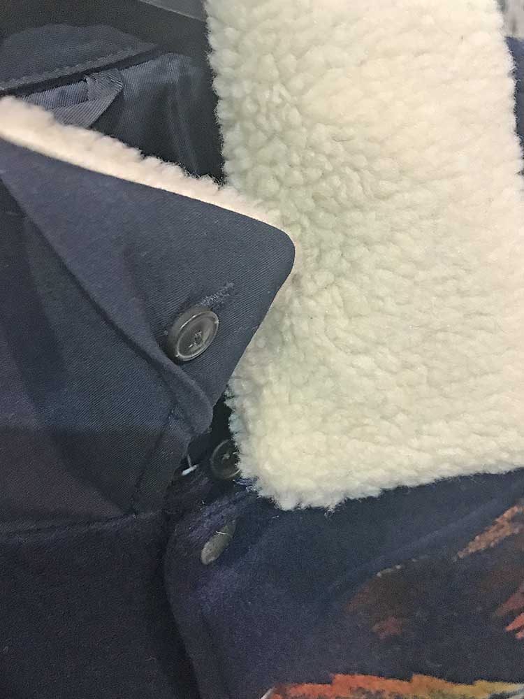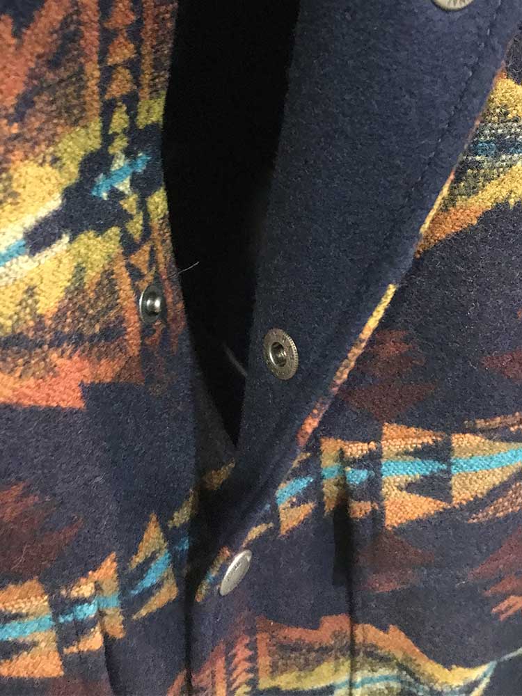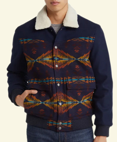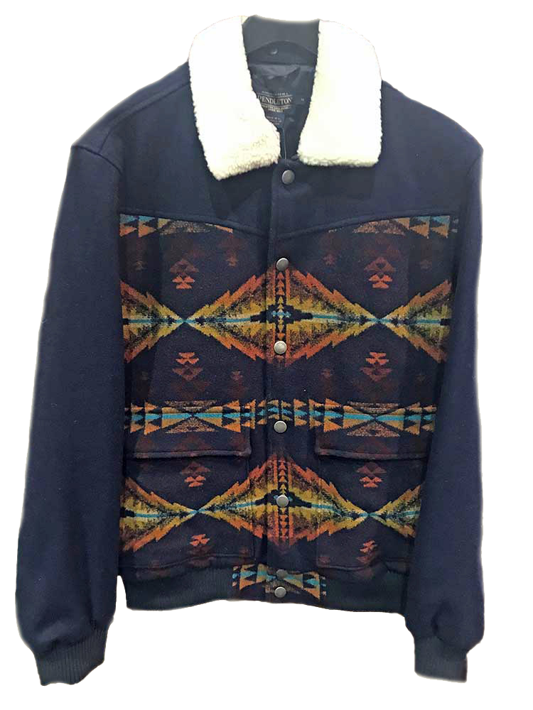 Men's Colorful Jacksonville Wool Coat by Pendleton - Classic Pendleton! MARKED DOWN AGAIN! This durable coat is made from rich wool and features a southwest-inspired geo pattern and plush faux-shearling collar (removable) for a truly cold-weather-ready look. Ribbed cuffs and hem and lined. 100% wool with 81% polyester, 19% acrylic faux-shearling trim. Front pockets.
