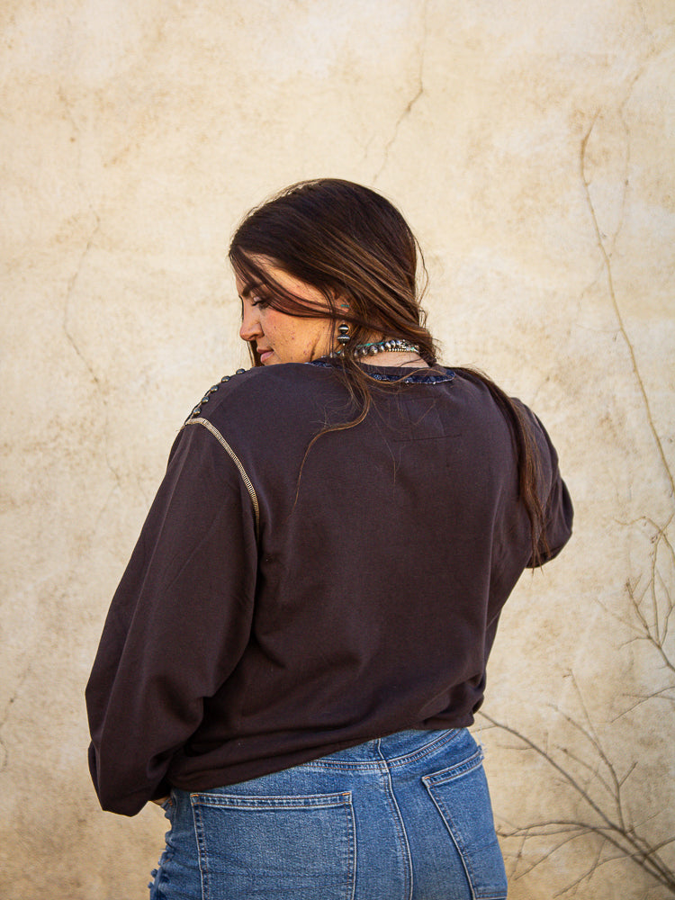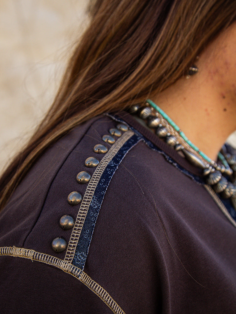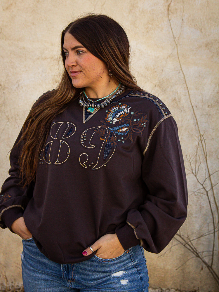 Briar 89 Oversized Sweater by DDR - this a beautiful oversized sweater to pair with jeans for date night or another in the office! Chocolate brown with blue and tan sprinkled in to add some color. This sweater is part of our ONE AND DONE sale, 20% off!! (T4133)