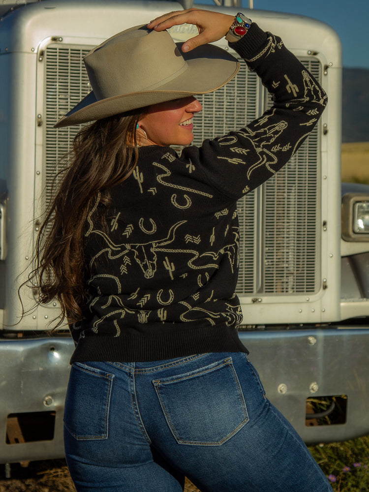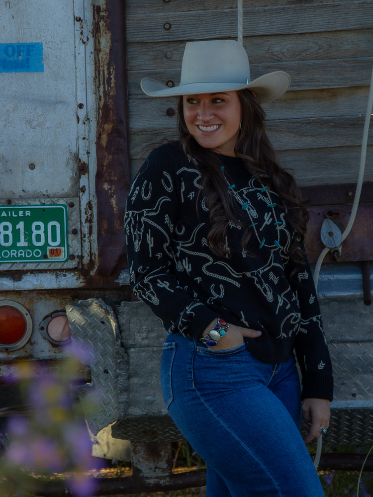 Ainsley Sweater - we love this sweater for its cute graphic design and softness as well as the nice price to pair with it! Prepare for those cold nights by adding this sweater to your closet today!