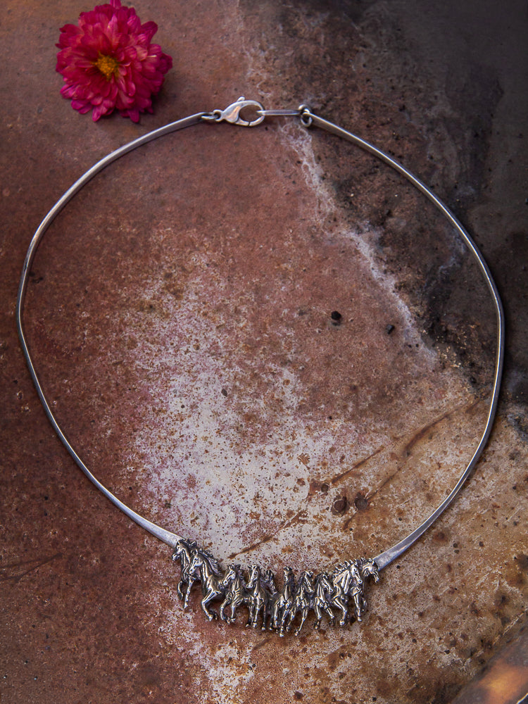 Stampede Choker - this unique choker is one of a kind! A beautiful image of nine running horses in sterling silver. Perfect piece to top off your layer set of necklaces!