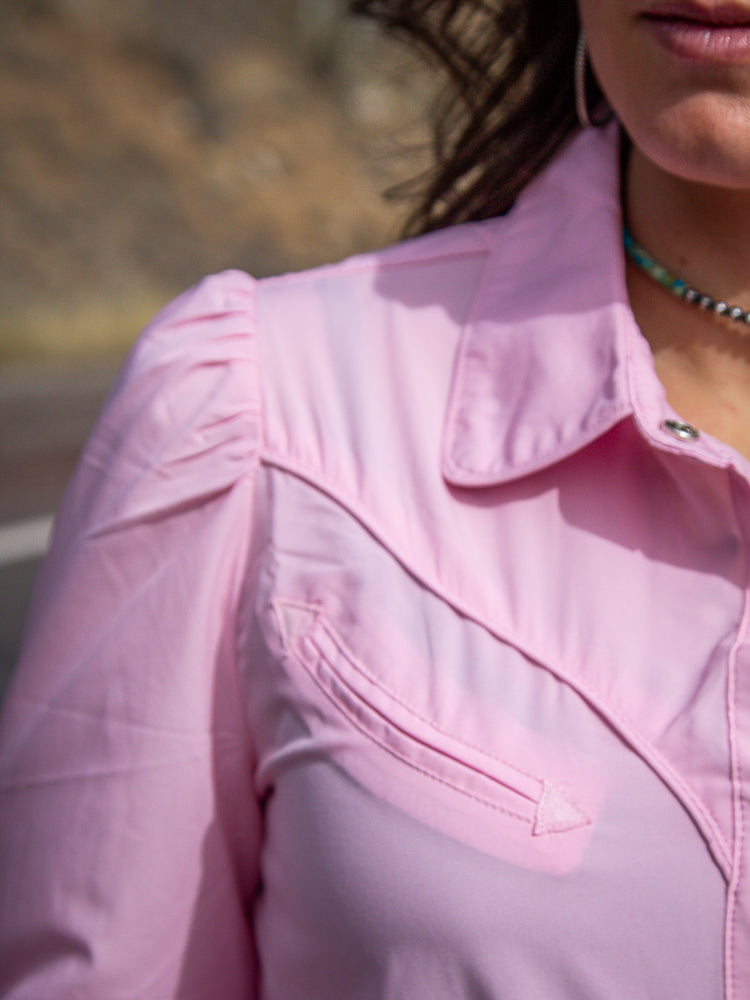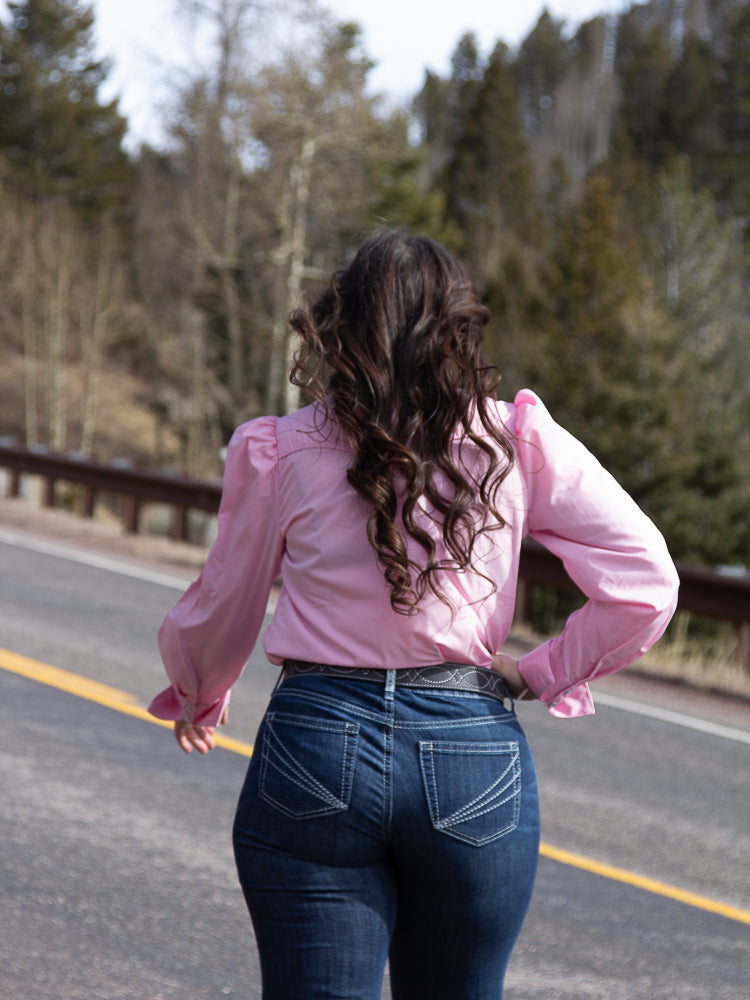 Pink Lady Button Up - this button up is perfect for pink night at the rodeo or as a layering piece with your favorite sweater! This button up has beautiful color that pairs well with jeans and fits beautifully allowing you do all your different activity like roping calves or playing pool. HH2710
