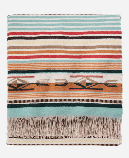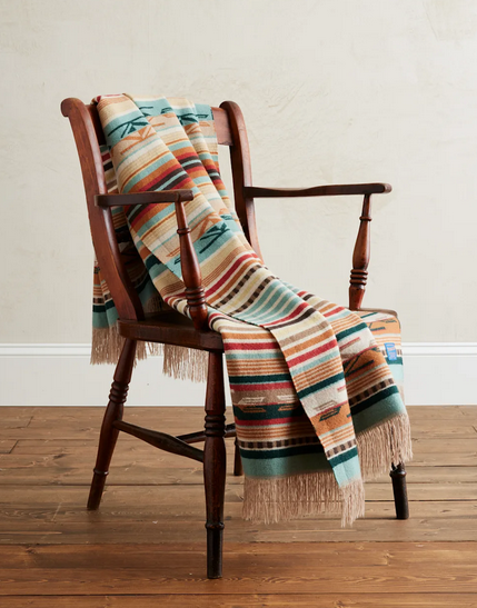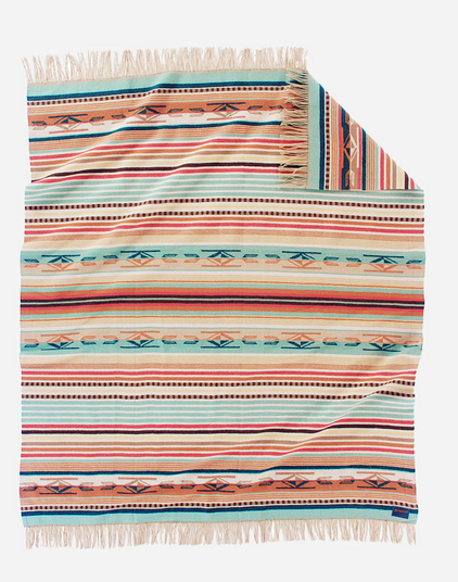 Fringed Chimayo Throw by Pendleton, Coral + Aqua