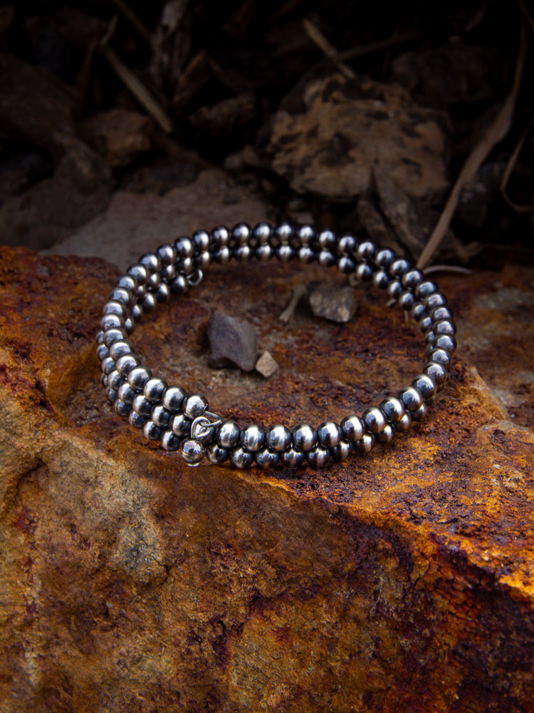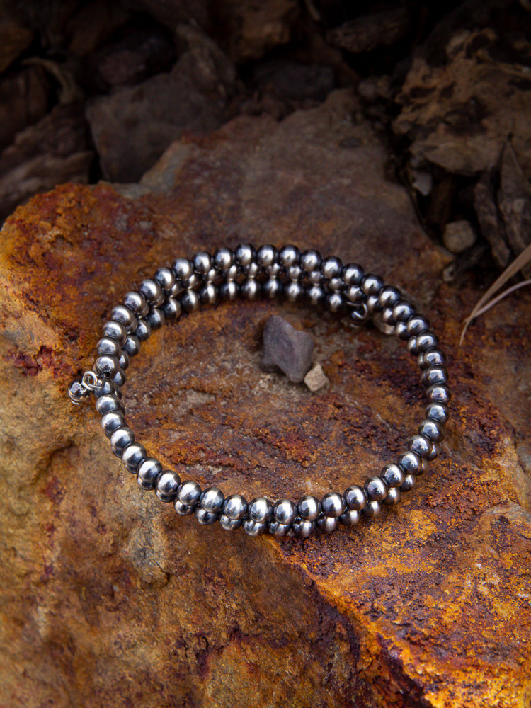 Navajo Pearl Wire Bracelet - this is a staple piece to add to your collection, navajo pearls go with everything while still being uniquely gorgeous! These 3mm navajo pearl beads strung along wire to keep it nicely around your wrist. This bracelet is also adjustable!