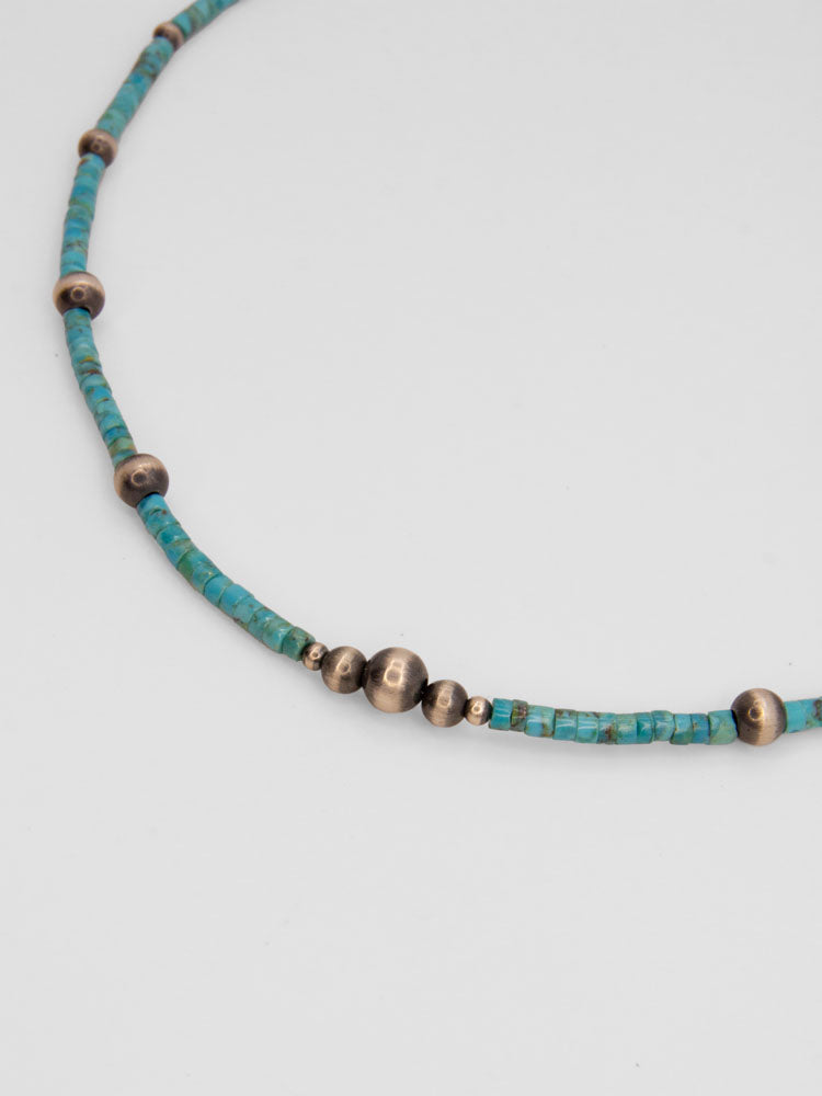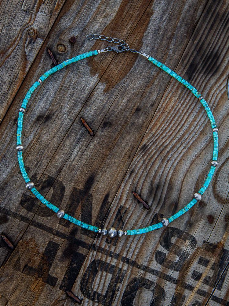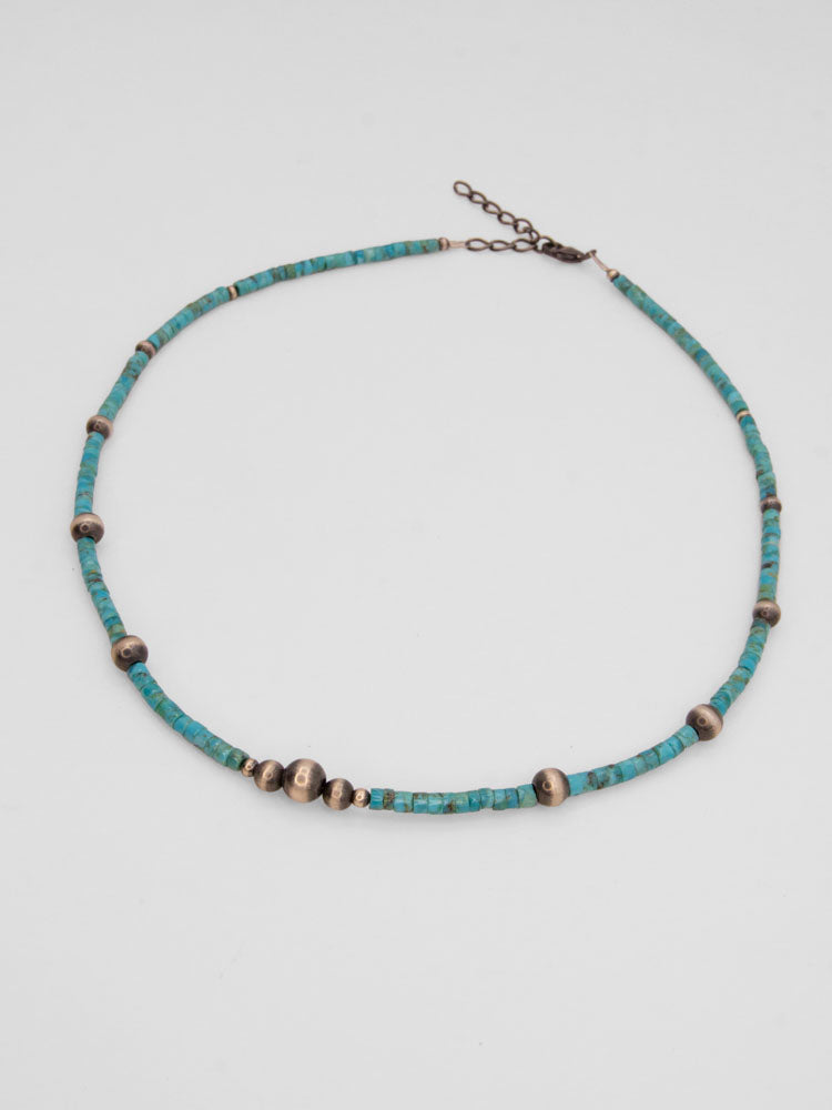 Graduated Navajo Pearls w/ Turquoise - beautiful strand of turquoise stones with graduated navajo pearls with three center pearls! Simply perfect piece to layer or wear alone hanging 16".