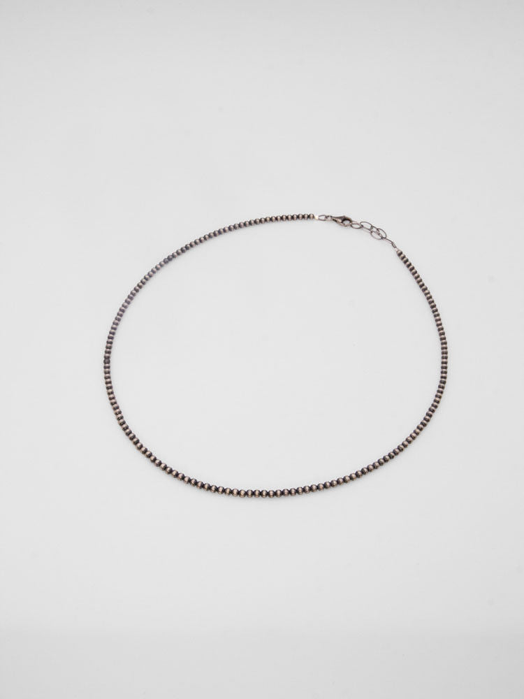 16- and 18-inch 3mm Navajo Pearl Necklace - Hand-crafted sterling silver Navajo pearl beads. Extended adjustable chain to increase length by as much as two inches. Lobster claw sterling clasp findings. These are SUPER for stacking and piling on different lengths and bead diameters! We have 4 and 5 mm versions, too. Native made in New Mexico, USA.