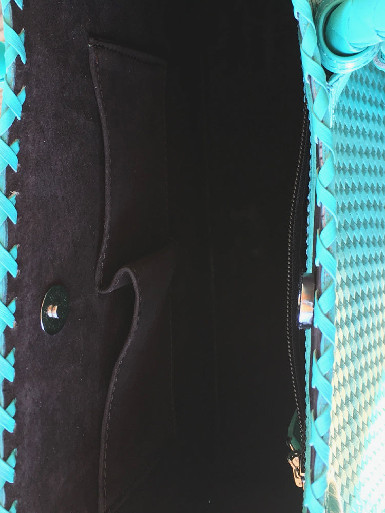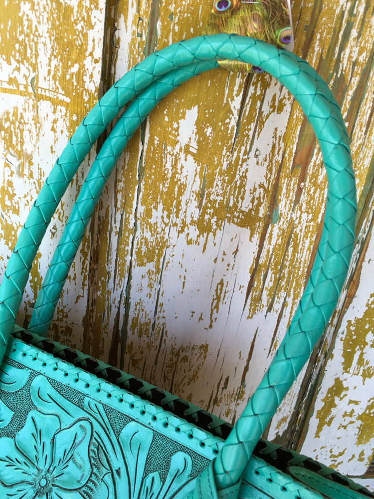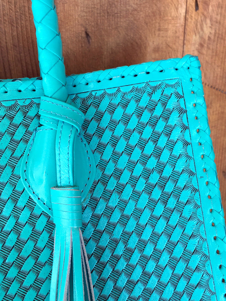Que Chula! Marcos Large Tooled Leather Turquoise Tote Bag